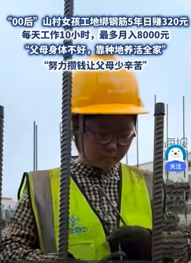 24岁川妹子绑扎钢筋一干就是5年:每天干10小时挣320网友
